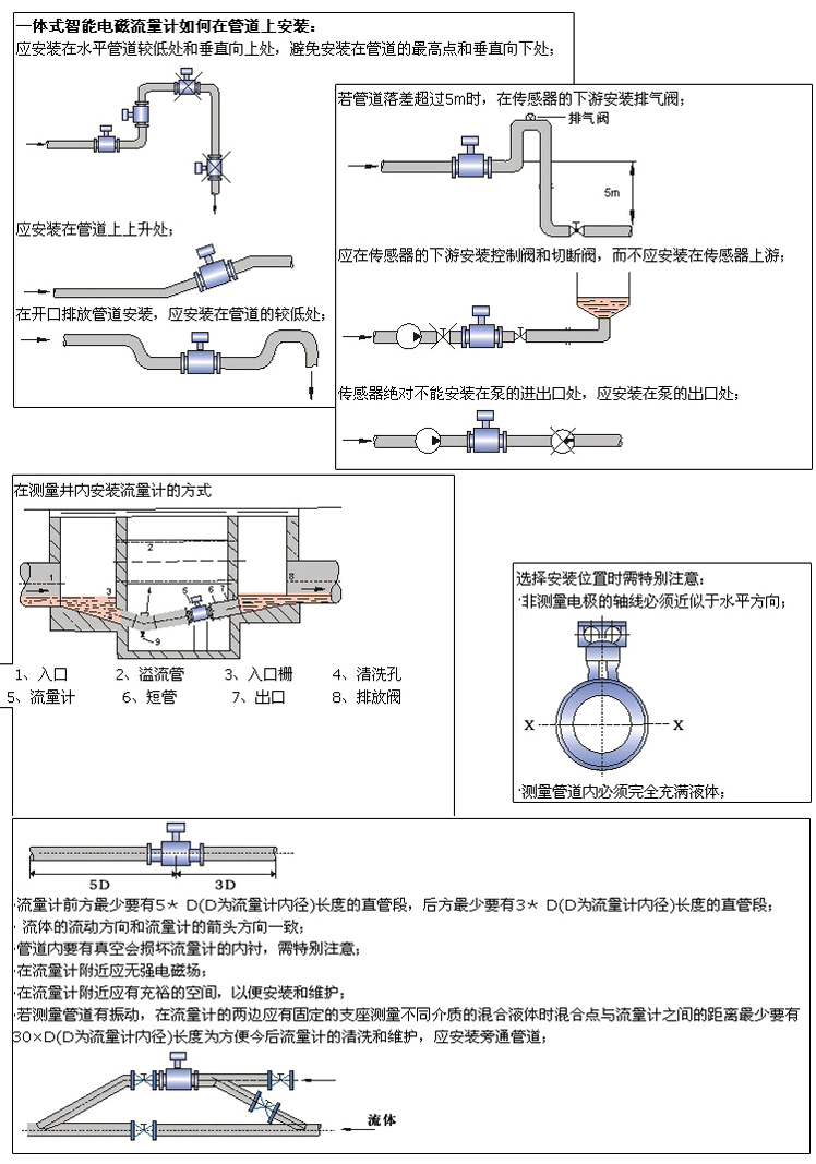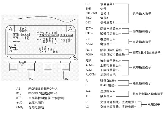 ④分體型電磁流量計(jì)勵(lì)磁電纜和轉(zhuǎn)換器之間的連接用專用接線完成,轉(zhuǎn)換器和外部的連接同一體型電磁流量計(jì)。