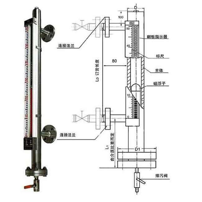 磁翻板液位計的最顯著特點是液體介質(zhì)與指示器完全隔離,所以在任何情況下都非常安全、可靠、耐用,而且各種型號的液位計配上液位報警、控制開關(guān),可實現(xiàn)液位或界位的上、下限越位報警,控制或連鎖;配上靜壓式液位變送器或干簧-電阻式液位變送器,可將液位,界位信號轉(zhuǎn)換成二線制4-20mADC標(biāo)準(zhǔn)信號,實現(xiàn)遠(yuǎn)距離指示、檢測、記錄與控制。該系列磁翻板液位計可廣泛適用于電力、石油、化工冶金環(huán)保、船舶、建筑、食品等各行業(yè)生產(chǎn)過程中的液位測量與控制。