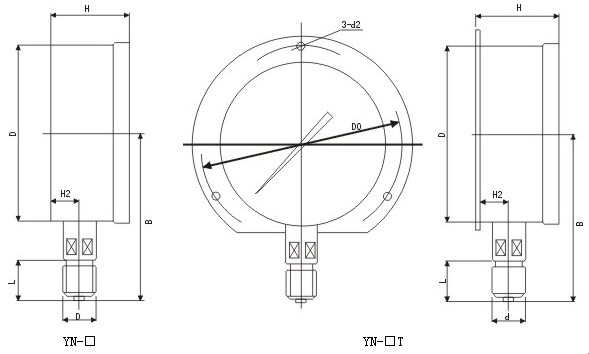 型號(hào) | D | d | L | d0 | B | H | d2 | H1 | H2 | YN-60 | φ60 | M14×1.5 | 14 |
