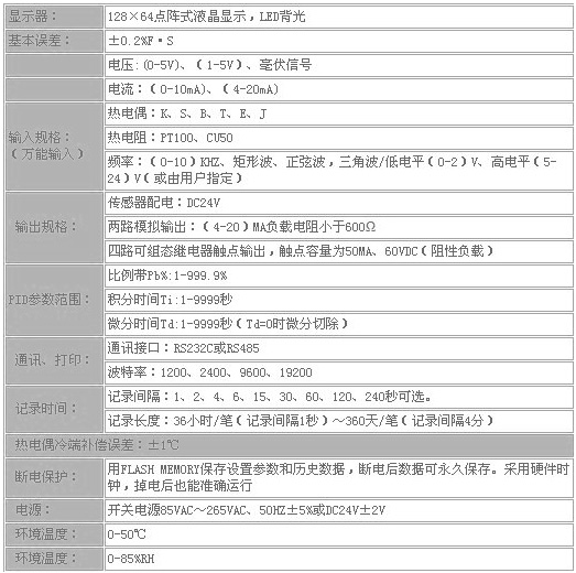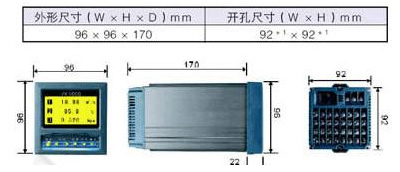 一、概述 小型無紙記錄儀具有3路萬能通道(可組態(tài)選擇輸入:標準電流、標準電壓、熱電偶、熱電阻、頻率等信號)、4路警輸出、3路獨立傳感器配電、1個RS232通訊接口。用戶可以通過本公司提供的上位機管理軟件ScanX對所取的數據進行分析、存檔、打印處理。本設備還可以與MCGS、Citect、組態(tài)王等專業(yè)組態(tài)軟件通訊組成計算機遠程監(jiān)控系統(tǒng)。 小型無紙記錄儀采用整體鋁合金外殼,高亮度LED單色液晶顯示。6鍵式操作,操作方法簡單易學。小型無紙記錄儀還具有強大的顯示功能(主要顯示界面:棒圖顯示、實時趨勢曲線顯示、歷史曲線追憶、超限報警、報警狀態(tài)顯示等)。并且提供智能化歷史趨勢全自動回放功能和定位加放功能,可以在最短時間內查找到報警點。二、主要技術指標三、安裝尺寸四、接線方法
