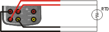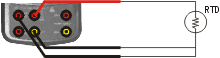 注意:校驗(yàn)儀可以模擬一個2線的RTD輸出,3線和4線端子僅供測量使用,不可用來模擬輸出。欲連接到一個3線或4線變送器,可使用疊式的電纜線以提供額外接線。